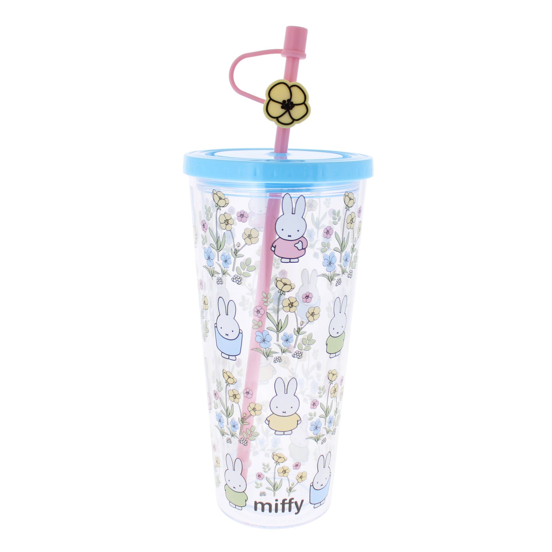 Rendez la consommation encore plus facile et mignonne avec ce gobelet et paille adorables de Miffy. C'est l'ajout parfait à vos essentiels quotidiens, car c'est le meilleur moyen de rester hydraté en déplacement ou simplement pour se détendre à la maison. Le design est une impression intégrale de nombreux Miffys et fleurs ! La base du gobelet est transparente avec un couvercle bleu, une paille rose avec un capuchon ainsi qu'un clip MI en forme de fleur, comment résister !