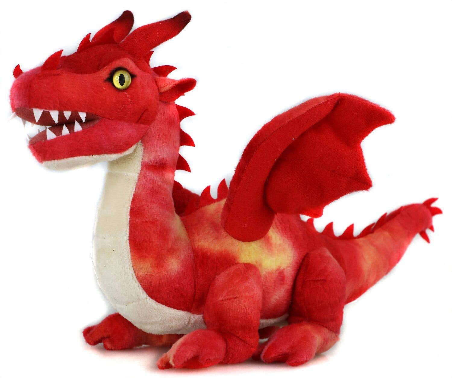 NOM DU PRODUIT : Dragon rouge - 40 cm (longueur) - Mots-clés : monde de conte de fées, fable, légende, fantaisie, peluche, peluche, animal en peluche, doudou